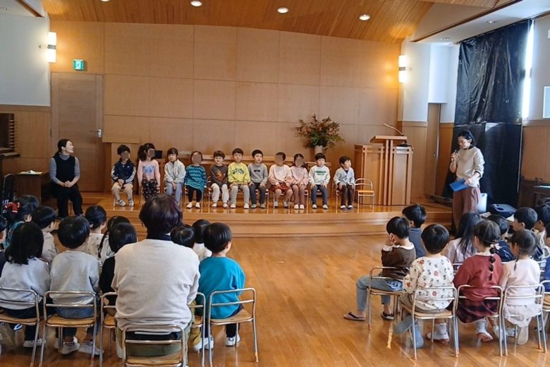 絵本「おおきくなったら」をスライドで楽しみ、楽しい時間はあっという間に過ぎていきます。
