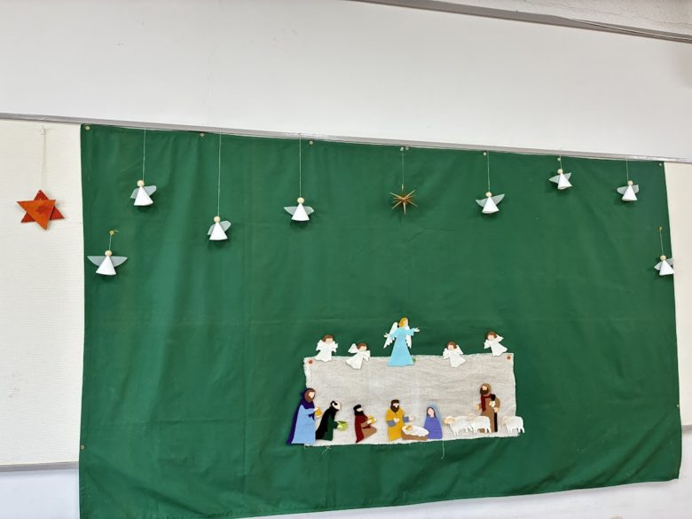 アドベントを迎えました(2025.12.3) 救い主イエス・キリストのお誕生を記念するクリスマスを待ち望む4週間「アドベント」を迎えました。お礼拝堂も各クラスもすっかりクリスマスの飾りつけにかわりました。今日は12月のお誕生日礼拝!!いつもとは違い、アドベントクランツのそうそくに1本火を灯し、♪アドベントクランツに♪をみんなで歌って、お誕生日のお友だちをお祝いしました。幼稚園では毎月子どもたちの誕生会を行い、神様の祝福があるように祈りつつ過ごしています。心静かに、また喜びをもってクリスマスを待ち望みたいと思います。